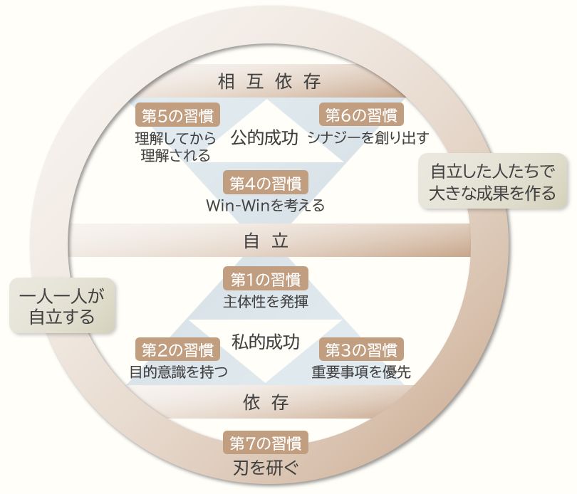 とした上で、7つの習慣それぞれを、格言と事例を交えて紹介しています。