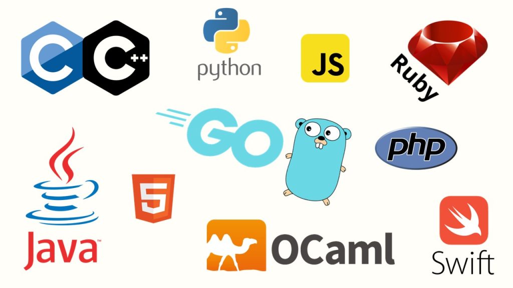 まずプログラム言語の種類について。普段私たち使っている言語である日本語、中国語、英語など(自然言語と言います)と同じように、たくさんの種類があります。各言語にロゴがあって、それを図にまとめるとこんな感じです(これ以外もたくさんあります)